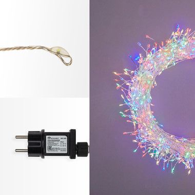 Гирлянда состоит из тонкого провода длиной 20 метров, с расположенными на нем 1000 долговечными светодиодами в цвете мультиколор.