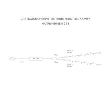 Блок питания позволяет подключить до 50 метров гирлянд на каждый из разъемов.