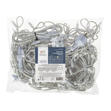 Данная гирлянда имеет теплый белый цвет свечения и предназначена для размещения как внутри помещений, так и снаружи.