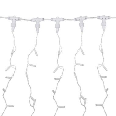 Светодиодная гирлянда Занавес (Дождь) представляет собой гибкий горизонтальный шнур-шину 2 м, к которому через определенные промежутки крепятся 20 вертикальных нитей равной длины со светодиодами.