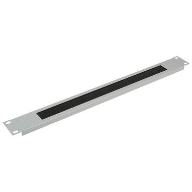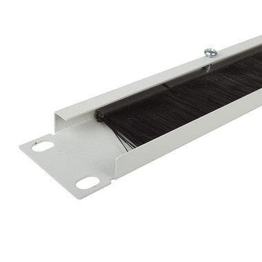 Щеточный ввод 1U 19” устанавливается в телекоммуникационном шкафу на 19” направляющих. Препятствует проникновению пыли во внутреннее пространство шкафа.