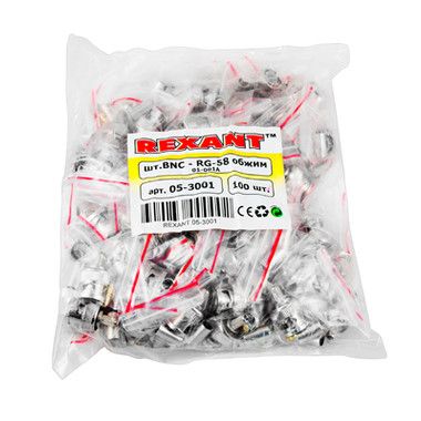 РАЗЪЁМ штекер BNC RG-58 обжим REXANT предназначен для подключения коаксиального кабеля c волновым сопротивлением 50 или 75 Ом к видеокамерам, видеорегистраторам, мониторам и другим радиоэлектронным устройствам. BNC-коннектор (BNC сокр. от Bayonet Neill Concelman) обжимной - электрический разъем с байонетной фиксацией закрепляется на кабеле обжимом с помощью специализированных клещей для коаксиальных кабелей. Такое соединение обеспечит безопасную, качественную и долговечную эксплуатацию видеоаппаратуры. BNC-разъем изготовлен из материалов: