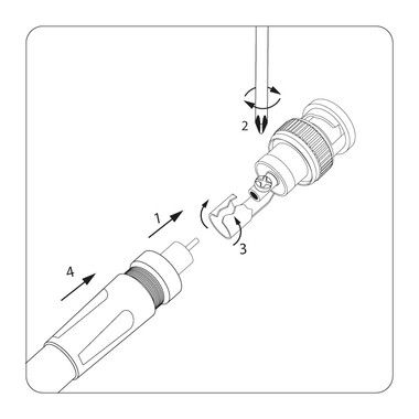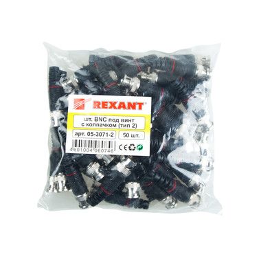 РАЗЪЁМ штекер BNC под винт с колпачком тип-2 REXANT предназначен для подключения коаксиального кабеля c волновым сопротивлением 50 и 75 Ом, диаметром до 7мм, к видеокамерам, видеорегистраторам, мониторам и другим радиоэлектронным устройствам. BNC-коннектор (BNC сокр. от Bayonet Neill Concelman) под винт - электрический разъем с байонетной фиксацией закрепляется на кабеле зажимом с помощью винта центрального контакта (центральная жила - под винт, оплетка - обжимается). Этот способ крепления значительно проще и быстрее, чем пайка, но его надежность и качество соединения остаются на неизменно высоком уровне. Пластиковый колпачок защищает соединения и предотвращает кабель от перегиба в месте крепления к разъему. BNC-разъем изготовлен из материалов:
