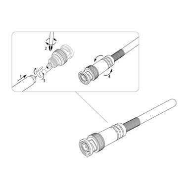 РАЗЪЁМ штекер BNC под винт с пружиной металл PROconnect предназначен для подключения коаксиального кабеля c волновым сопротивлением 50 и 75 Ом, диаметром до 7 мм, к видеокамерам, видеорегистраторам, мониторам и другим радиоэлектронным устройствам. BNC-коннектор (BNC сокр. от Bayonet Neill Concelman) под винт - электрический разъем с байонетной фиксацией закрепляется на кабеле зажимом с помощью винта центрального контакта (центральная жила - под винт, оплетка - обжимается). Этот способ крепления значительно проще и быстрее, чем пайка, но его надежность и качество соединения остаются на неизменно высоком уровне. Металлический колпачок с пружиной защищает соединения и предотвращает кабель от перегиба в месте крепления к разъему. BNC-разъем изготовлен из материалов: