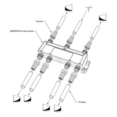 Телевизионный делитель предназначен для телевизионных систем и используется в домах и квартирах, где требуется подключить несколько телевизоров к одной антенне. Этот делитель распределяет поступающий на вход сигнал поровну на его выходы, что обеспечивает одинаково четкое изображение на всех подключенных устройствах. Делитель REXANT имеет шесть выходов для сигнала и подключается с помощью стандартных F-разъемов. Делитель комплектуется необходимыми F-разъемами, что позволяет удобно и быстро монтировать телевизионный кабель и подключать аппаратуру. Пайка внутри делителя осуществляется с использованием золотосодержащего припоя, что позволяет получить сигнал высокого качества и увеличить надежность. Данный делитель подходит для сигналов с частотой 5-1000 МГц, что соответствует стандартному эфирному телевидению.