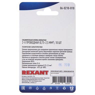 Компактная универсальная 2-проводная клемма в прозрачном корпусе. Клемма предназначена для соединения одножильных медных проводников. Конструкция контактной группы обеспечивает надежное крепление провода. Подключение осуществляется способом проталкивания до упора очищенного от изоляции провода в свободное гнездо клеммы. Оболочка из прозрачного пластика делает контакт изолированным, а так же позволяет визуально оценить положение проводника. Напряжение 400 В,