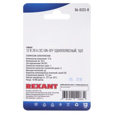 Номинальное напряжение: 12В;