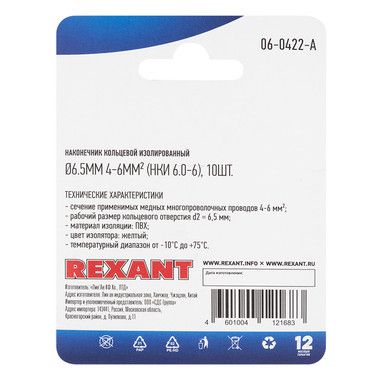 - рабочий размер кольцевого отверстия d2 = 6.5мм;