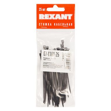 Хомут нейлоновый (кабельная стяжка) 100х2,5 мм черный REXANT предназначен для крепления или обвязки в жгут кабелей и проводов, крепления гибких гофротруб, а также других предметов к несущей поверхности или для соединения между собой. Такая стяжка используется при проведении электромонтажных работ, при монтаже структурированных кабельных систем, для бытовых нужд, а также в других отраслях народного хозяйства.