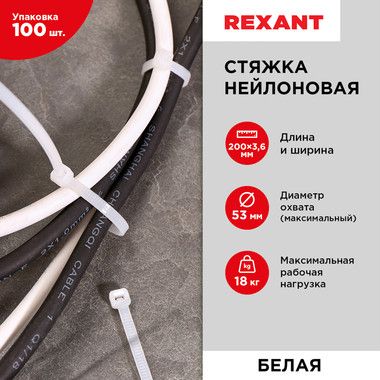 Хомут нейлоновый (кабельная стяжка) – это крепежный элемент, представленный в виде стяжки, используется для герметизации и обвязки различных кабелей, проводов и других аналогичных изделий, является альтернативой проволоке, применяется при прокладке сантехнических систем, для крепления простых конструкций систем монтажа, гибких воздуховодов, электропроводки и выполнении других бытовых задач. Стяжки характеризуются как один из наиболее быстрых, удобных и экономически выгодных способов бандажирования, крепления и маркировки.