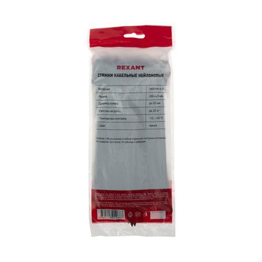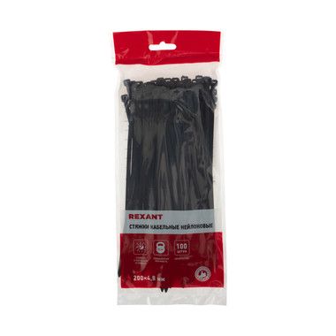 Хомут нейлоновый (кабельная стяжка) 200х4,8 мм чёрный REXANT предназначен для крепления или обвязки в жгут кабелей и проводов, крепления гибких гофротруб, а также других предметов к несущей поверхности или для соединения между собой. Такая стяжка используется при проведении электромонтажных работ, при монтаже структурированных кабельных систем, для бытовых нужд, а также в других отраслях народного хозяйства.
