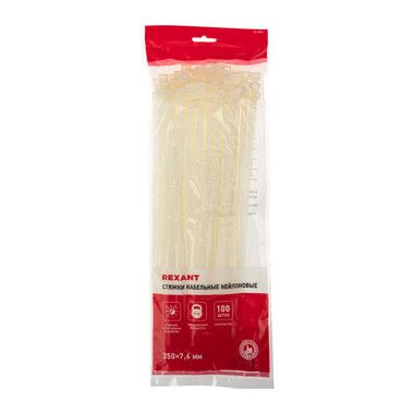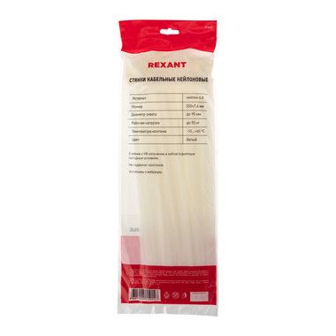 Хомут нейлоновый (кабельная стяжка) 350х7,6 мм белый REXANT предназначен для крепления или обвязки в жгут кабелей и проводов, крепления гибких гофротруб, а также других предметов к несущей поверхности или для соединения между собой. Такая стяжка используется при проведении электромонтажных работ, при монтаже структурированных кабельных систем, для бытовых нужд, а также в других отраслях народного хозяйства.