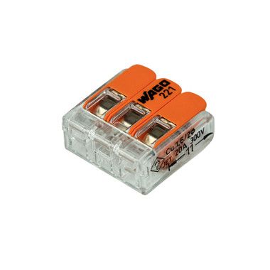 Оригинальная соединительная многоразовая клемма WAGO (221-413) на 3 проводника с плоско-пружинным зажимом предназначена для подсоединения до 3 зачищенных проводников тонкого сечения (от 0,08 до 4 мм², одно- и многожильных до 2,5 мм²).