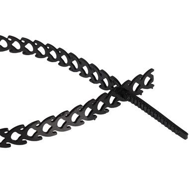 Длина и универсальное строение хомута позволяет закреплять предметы разными способами: плотно к опоре, рядом с опорой на определенном растоянии, на выбранном расстоянии между двумя опорами, либо зафиксировать несколько предметов в ряд. Также необходимо отметить экономичность использования данной стяжки: из однго хомута можно сделать до 3-5 бандажей.