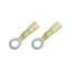 Изолированный кольцевой наконечник REXANT состоит из двух компонентов: металлического коннектора и защитного изолятора. Главной отличительной особенностью такого наконечника является термоусаживаемый изолятор клеммы с клеевым краем, что обеспечит защиту места обжима кабеля от попадания влаги и грязи. Металлический коннектор изготовлен из латуни, с поверхностным электролитическим лужением. Обжатие производится специальными пресс-клещами (ht-301 H арт.12-3014, 12-3014; ht-301 N арт.12-3116; ht-301 W арт.12-3021, 12-3021-4) поверх защитного изолятора. После обжатия при нагревании наконечника происходит усадка термоизоляционной трубки на кабеле — это обеспечит герметичность соединения. Цвет изолятора прозрачно-желтый.