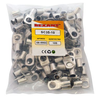 Наконечник кольцевой (НК ø 10.5 мм) 35 мм² REXANT предназначен для создания качественного подключения электрооборудования, которое осуществляется через контактное соединение на основе винтовой фиксации. Такая клемма используется для оконцовывания многожильных медных проводов при монтаже электрооборудования силовых или осветительных сетей (электрооборудования промышленных предприятий, систем отопления, горячего водоснабжения, вентиляции и кондиционирования, обогрева водостоков и дренажа, лифтов или сверхмощного бытового электрооборудования).