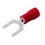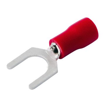Наконечник вилочный изолированный (НВИ - 5.3 мм) 0.5-1.5 мм² REXANT предназначен для создания качественного подключения электрооборудования, которое при необходимости возможно разъединять без полного откручивания крепежного соединения, всего лишь ослабив винтовую фиксацию. Такая клемма используется для оконцовывания многожильных медных проводов при монтаже мобильных электрических контактных соединений на подвижном составе (автомобиле-, вагоно-, самолето- и судостроении) или в других местах, где важна надежность соединения (к примеру, телефонное или климатическое оборудование).