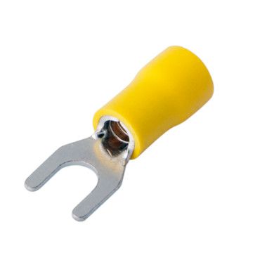 Наконечник вилочный изолированный (НВИ - 5.3 мм) 4-6 мм² REXANT предназначен для создания качественного подключения электрооборудования, которое при необходимости возможно разъединять без полного откручивания крепежного соединения, всего лишь ослабив винтовую фиксацию. Такая клемма используется для оконцовывания многожильных медных проводов при монтаже мобильных электрических контактных соединений на подвижном составе (автомобиле-, вагоно-, самолето- и судостроении) или в других местах, где важна надежность соединения (к примеру, телефонное или климатическое оборудование).