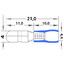 Изолированная штекерная клемма REXANT состоит из двух компонентов: металлического коннектора (штекер) и защитного изолятора, закрывающего место обжима провода. Металлический коннектор изготовлен из латуни, с поверхностным электролитическим лужением, а изолятор клеммы из поливинилхлорида (ПВХ), надежно защищающий место обжима кабеля от физических воздействий, а человека от поражения электрическим током. Обжатие производится специальными пресс-клещами (ht-301 H, ht-301 N, ht-301 W) поверх защитного изолятора. Цвет изолятора синий.