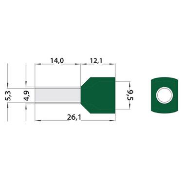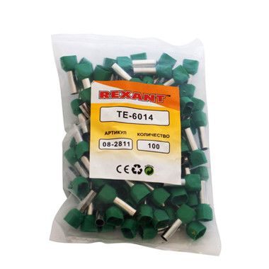 Наконечник штыревой втулочный изолированный (НШВИ F-14 мм) 2х6 мм² зеленый REXANT предназначен для создания быстрого и качественного подключения различного электрооборудования и монтажа электросетей. Такой современный способ подготовки кабеля к соединению заменяет процесс облуживания или скрутки многожильных медных проводов, формируя целостное окончание кабеля с последующим подключением промышленного или бытового электрооборудования.