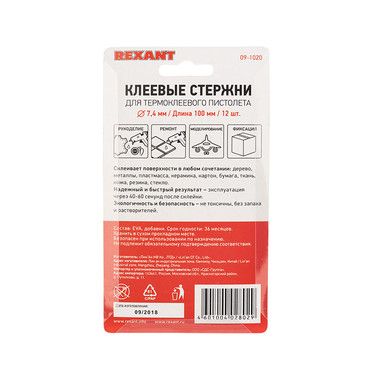 Клеевой стержень REXANT (клей-расплав/термоклей) – вещество, которое при нагревании принимает жидкую форму, а при остывании возвращается в первоначальное состояние, склеивая поверхности, и становится твердым.
