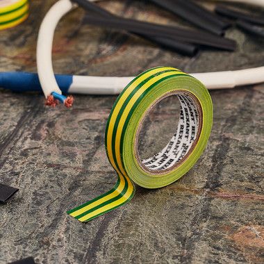 Изолента желто-зеленого цвета в соответствии с требованиями ГОСТ Р50462 используется для обозначения заземления.