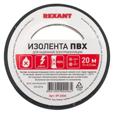 Изолента REXANT предназначена для электрической изоляции, цветной маркировки, соединения, защиты от внешних факторов и герметизации кабелей, проводов и шнуров.