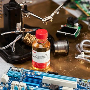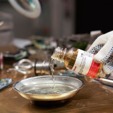 Флюс для пайки СКФ 100мл (спирто-канифольный) REXANT предназначен для удаления оксидов с поверхности под пайку, улучшения растекания жидкого припоя и защиты от действия окружающей среды при пайке печатных плат и радиокомпонентов. Данный низкотемпературный флюс применяется при пайке деталей или поверхностей припоями оловянно-свинцовой группы в температурном диапазоне 250-280℃. После пайки смывка не требуется. Крышка-кисточка позволит наносить дозированное количество флюса на участки пайки.