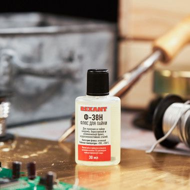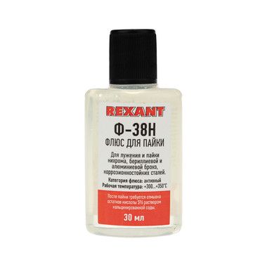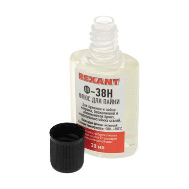 Флюс для пайки Ф-38Н 30 мл REXANT предназначен для удаления оксидов с поверхности под пайку, улучшения растекания жидкого припоя и защиты от действия окружающей среды при пайке нихрома, константана, манганина, бериллиевой и алюминиевой бронз, коррозионностойких сталей.