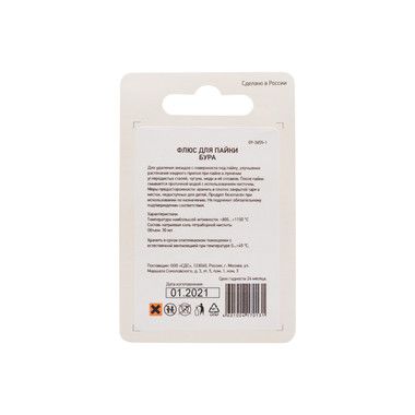 После пайки, во избежание коррозии, требует промывки горячей водой с использованием кисточки или щетки.