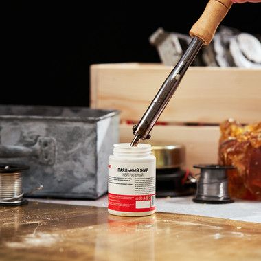 Паяльный жир нейтральный REXANT предназначен для удаления оксидов с поверхности под пайку, улучшения растекания жидкого припоя при пайке радио и электротехнических устройств. Главным образом, жир хорошо держится на различных металлических контактах, тем самым в отличие от жидкого флюса, есть возможность точного дозирования, и высокой скорости нанесения на большое количество мест паек.