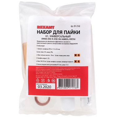 Набор расходных материалов для пайки REXANT состоит из необходимых для пайки деталей элементов и предназначен для работы с паяльником.