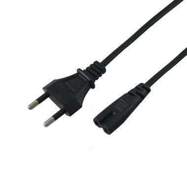 Шнур сетевой 1.8 м 2x0.75 мм² REXANT предназначен для подключения к сети переменного тока (AC) с напряжением 220 B аудио- и видеоаппаратуры, источников питания ноутбуков, игровых консолей и других приборов, имеющих штыревой сетевой разъем типа С8 (известен из-за его формы как «восьмерка»). Данный сетевой шнур (IEC cord) оснащен с одной стороны литой неразборной плоской вилкой (евро), с другой — литым гнездовым неполяризованным разъемом типа C7 (евроразъем) и двухжильным проводом с сечением жил 0.75 мм².