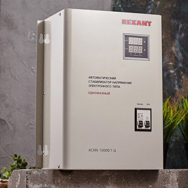 Однофазный стабилизатор переменного напряжения релейного типа марки REXANT предназначен для защиты различных бытовых и промышленных электроприборов от перепадов напряжения в сети и токов короткого замыкания.