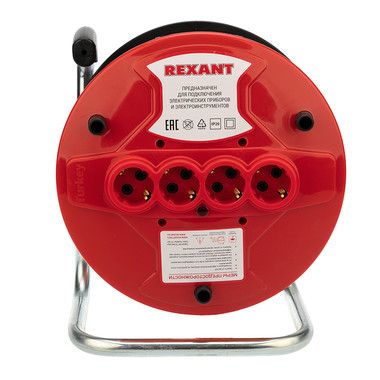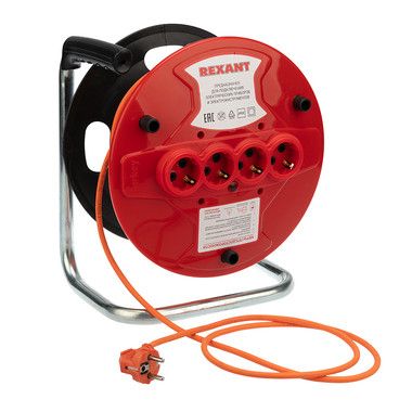 Шнур-удлинитель на катушке REXANT с 4 гнездами предназначен для подключения электрических приборов и электроинструмента, когда недостаточно стандартной длины шнура для питания от стационарных розеток.