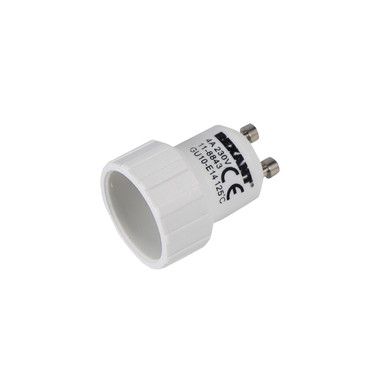 Переходник цокольный GU-10 на Е-14 REXANT применяется при переходе от электрических ламп с цоколем GU10, к электрическим лампам с цоколем Е14. Товар распространен в сфере строительства, при монтажных работах и в быту, когда нужно заменить один тип цоколя лампы на другой. Резьбовая система быстрого соединения электрических ламп обеспечивает надежный контакт.