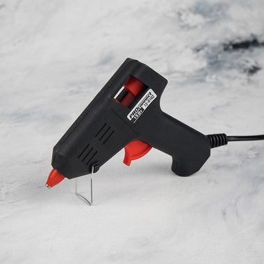 Корпус клеевого пистолета изготовлен из ударопрочной пластмассы и имеет скобу для установки в режиме ожидания.