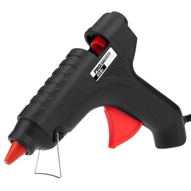 Корпус клеевого пистолета изготовлен из ударопрочной пластмассы и имеет скобу для установки в режиме ожидания.