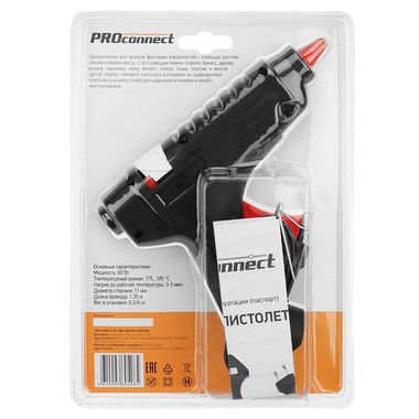 Пистолет клеевой PROconnect (60 Вт, Ø11 мм) предназначен для прочной фиксации поверхностей с помощью расплавленной клеевой массы.