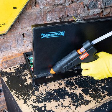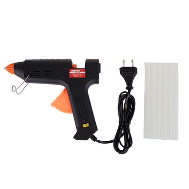 Принцип работы: клеевой стержень плавится в металлической камере с помощью нагревательного устройства и для точного дозированного нанесения при нажатии на курок подается из сопла на склеиваемую поверхность. Используется в моделировании, рукоделии, при выполнении мелкого ремонта, для изготовления упаковочной и сувенирной продукции, монтажа электрических плат, декорирования, и т.п.