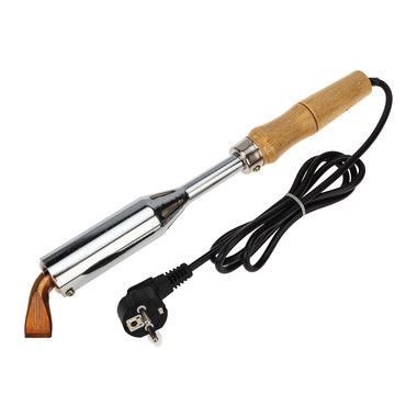 Электрический паяльник ПД 300 Вт с деревянной ручкой и клинообразным жалом непрерывного нагрева предназначен для монтажной пайки и лужения оловянно-свинцовистыми припоями элементов радиоэлектронной аппаратуры и тонкостенных металлических изделий в производственных и бытовых условиях.