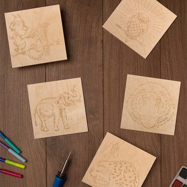 Для занятий вам понадобится прибор для выжигания, также оформить работу можно акварельными и гуашевыми красками, цветными карандашами и фломастерами.