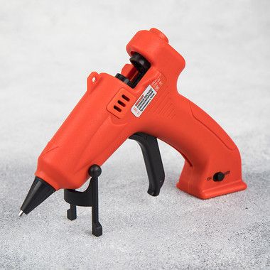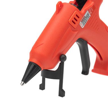 Корпус клеевого пистолета изготовлен из ударопрочной пластмассы и имеет скобу для установки в режиме ожидания.