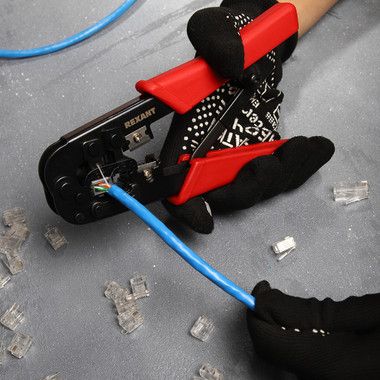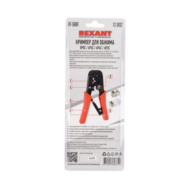 Кримпер REXANT HT-568R — универсальный инструмент для обжима разъемов RJ-45 (8P8C), RJ-12 (6P6C) и RJ-11 (6P4C и 6P2C), а также для снятия изоляции и обрезки проводов.