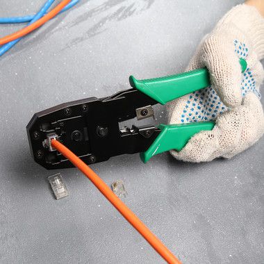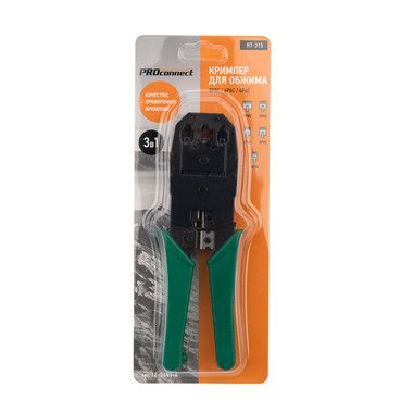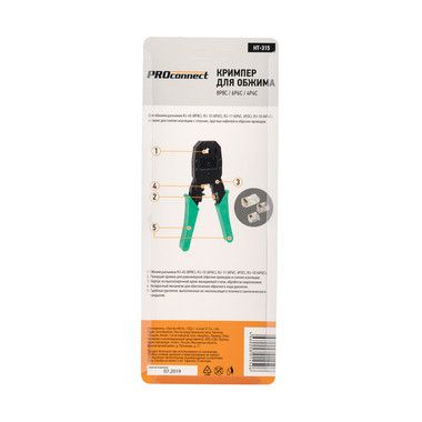Кримпер PROconnect HT-200 — универсальный инструмент для обжима разъемов RJ-45 (8P8C), RJ-12 (6P6C), RJ-11 (6P4C и 6P2C) и RJ-10 (4P4C), а также для снятия изоляции с плоских и круглых кабелей и для обрезки проводов.