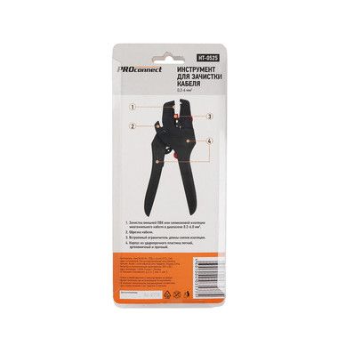 Инструмент PROconnect HT-0525 предназначен для зачистки внешней ПВХ или силиконовой изоляции многожильного кабеля в диапазоне 0.2-6.0 мм² и обрезки кабеля.