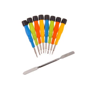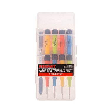 Набор отверток REXANT 9 в 1 оптимален для выполнения прецизионных работ в электронике и электромеханике, ремонта большинства видов и моделей популярной портативной техники: смартфонов, часов, планшетных ПК, игровых приставок, фотокамер, электронных сигарет. Комплект пригодится для ремонта техники Apple. Рабочая часть инструментов выполнена из качественной стали, обладающей высокой прочностью к механическим повреждениям и образованию ржавчины. Отвертки эргономичной формы обладают противоскользящими рукоятками. Двухсторонняя металлическая лопатка предназначена для вскрытия корпуса, извлечения матрицы, схем и деталей.