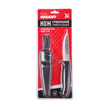 Нож строительный универсальный REXANT предназначен для проведения отделочных и монтажных работ, пригодится на рыбалке и во время туризма. Усиленное лезвие выполнено из качественной стали. Прецизионная заточка обеспечивает чистоту и точность реза. Удобная противоскользящая пластиковая рукоятка обеспечивает комфорт и повышенную безопасность при работе. Нож укомплектован пластиковыми ножнами для удобного и безопасного хранения, транспортировки. На корпусе чехла предусмотрена клипса-зажим, которая позволяет закреплять инструмент на одежде. Нож обладает повышенным рабочим ресурсом.