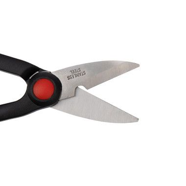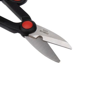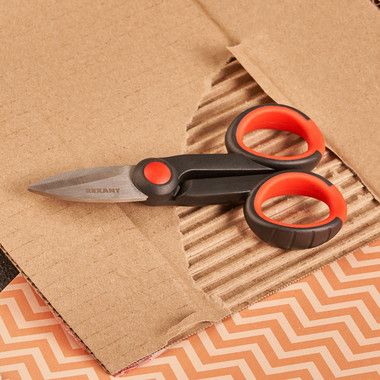 Ножницы универсальные REXANT идеально подходят для резки кожи, резины, картона, пластика, гофры, медных проводов, кабеля.