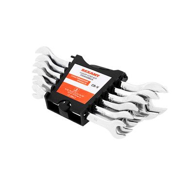 Набор рожковых гаечных ключей REXANT предназначен для монтажа и демонтажа резьбовых соединений: болтов, гаек, муфт и т. д. Хромованадиевый сплав, из которого изготовлены ключи, обладает такими свойствами, как прочность, жесткость, устойчивость к износу. Во время прокаливания он менее подвержен деформациям и потере первоначальной формы, чем другие типы инструментальной стали. Хромовое покрытие защищает рожковые ключи от образования ржавчины, продлевает их срок службы. Инструменты просты в обращении и обеспечивают доступ к любому крепежу. Гаечные ключи применяются в быту, слесарных мастерских и на производстве. Набор поставляется в пластиковом футляре для удобного хранения и транспортировки.